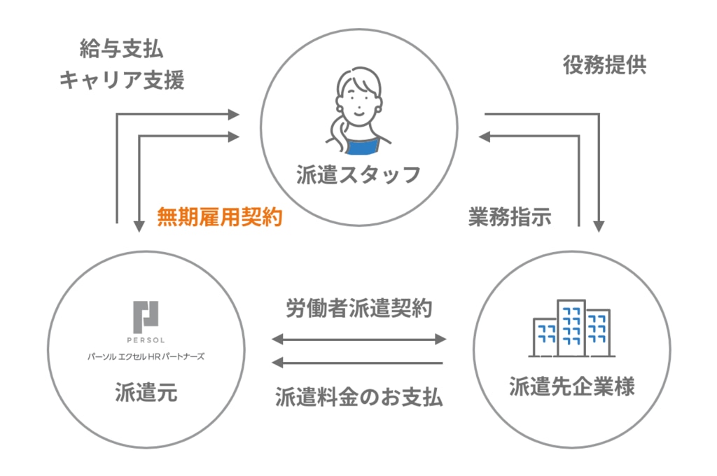 当社が「無期雇用社員」として採用した人材をお客様へ派遣します。派遣期間制限を受けずに派遣サービスを活用いただけます。